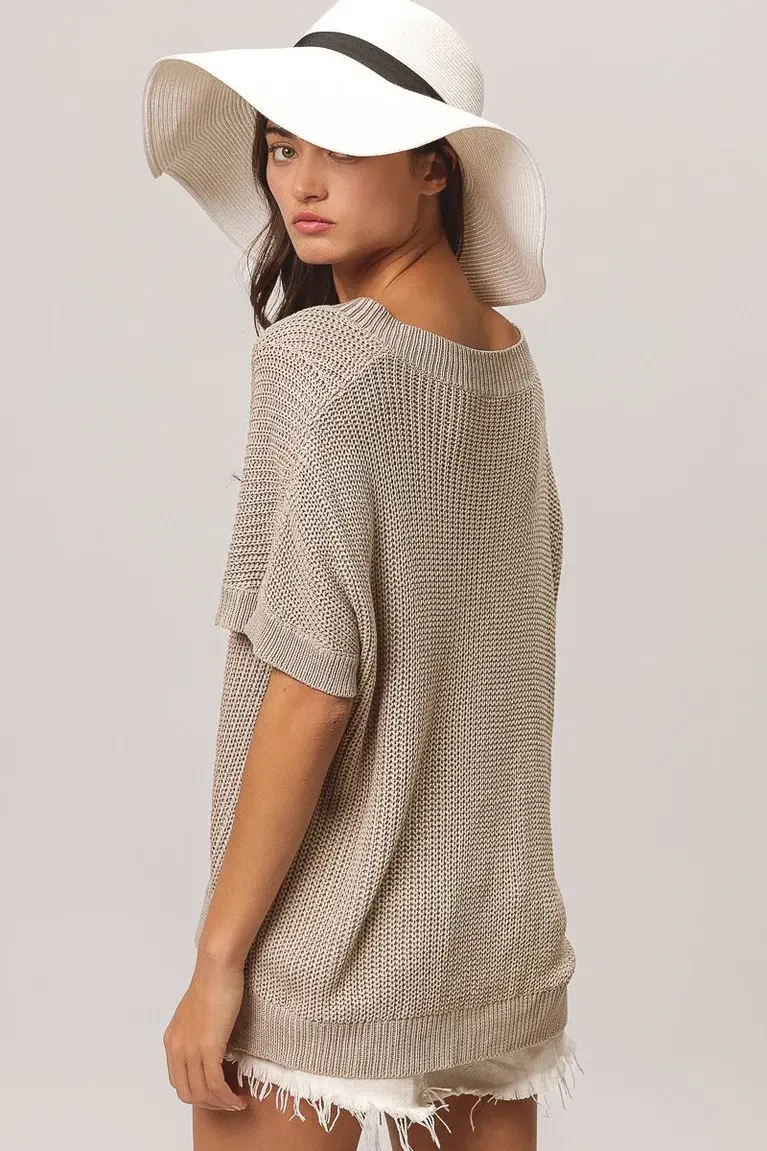 Tan Short Sleeve Dolman Sweater Top